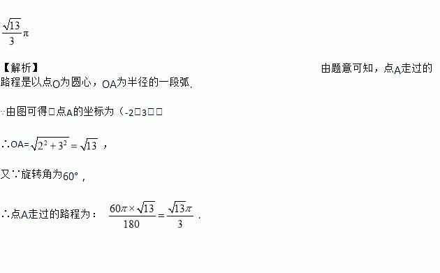 如图, 的顶点都在方格线的交点(格点)上,若将绕原点旋转,点走过的路程是__________.