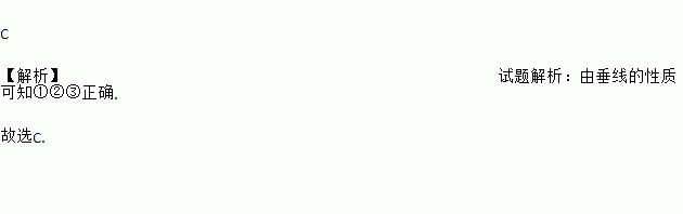 C 【解析】试题解析:由垂线的性质可知①②③正确. 故选C.