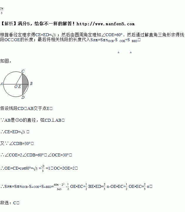如图,是的直径,弦,,,则阴影部分图形的面积为________.