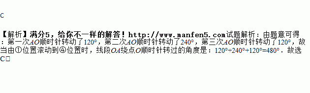 如图,大小不同的两个磁块,其截面都是等边三角形,小三角形边长是大三角形边长的一半,点O是小三角形的内心,现将小三角形沿着大三角形的边缘顺时针滚动,当由①位置滚动到④位置时,线段OA绕点O顺时针转过的角度是( )