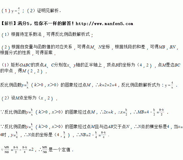 如图,在平面直角坐标系中,矩形OABC的顶点A、C分别在x、y轴的正半轴上,顶点B的坐标为(4,2)点M是边BC上的一个动点(不与B、C重合),反比例函数