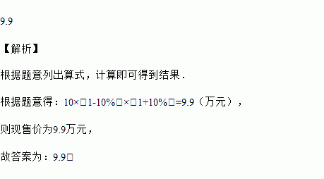 某品牌汽车经过两次连续的调价,先降价10%,后又提价10%,原价10万元的汽车,现售价________万元.