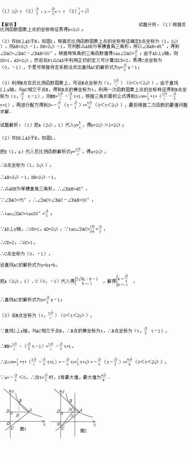 (3)如图2,M是线段AC上方反比例函数图象上一动点,过M作直线l⊥x轴,与AC相交于点N,连接CM,求△CMN面积的最大值.