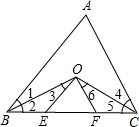 分析:先根据角平分线的性质求出∠1=∠2,∠4=∠5,再根据平行线的性质求出∠1=∠3,∠4=∠6,从而判断出△BOE,△OFC是等腰三角形即可解答.