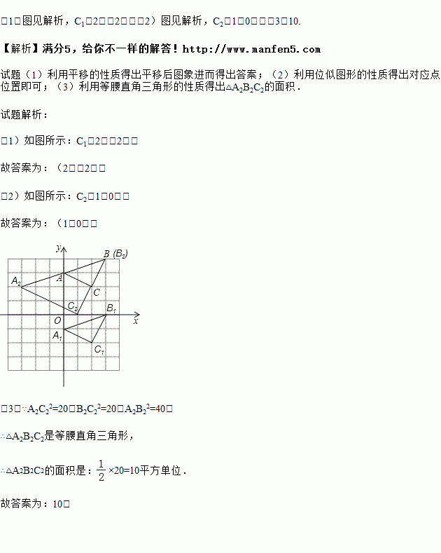 (3)四边形AA2C2C的面积是 平方单位.