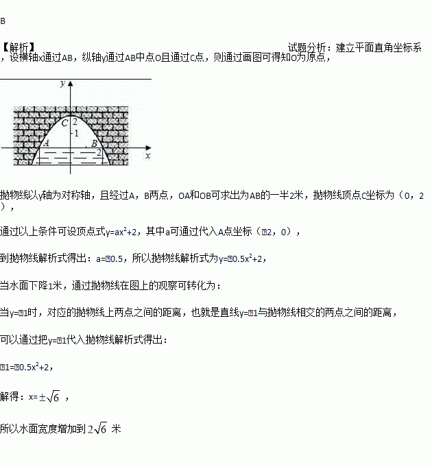 如图是一个横断面为抛物线形状的拱桥,当水面宽4米时,拱顶(拱桥洞的最高点)离水面2米,水面下降1米时,水面的宽度为 米.