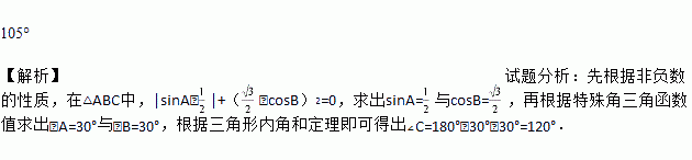 在△ABC中,若|sinA﹣|+(﹣cosB)2=0,则∠C=_____.