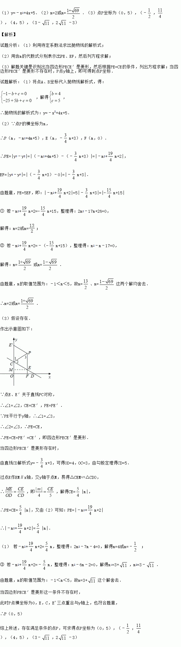 (3)若点E′是点E关于直线PC的对称点,是否存在点P,使点E′落在y轴上?若存在,请直接写出相应的点P的坐标;若不存在,请说明理由.