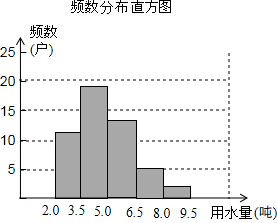 (2)要使60%的家庭收费不受影响,你觉得家庭月均用水量应该定为5吨,因为月平均用水量不超过5吨的有30户,30÷50=60%.