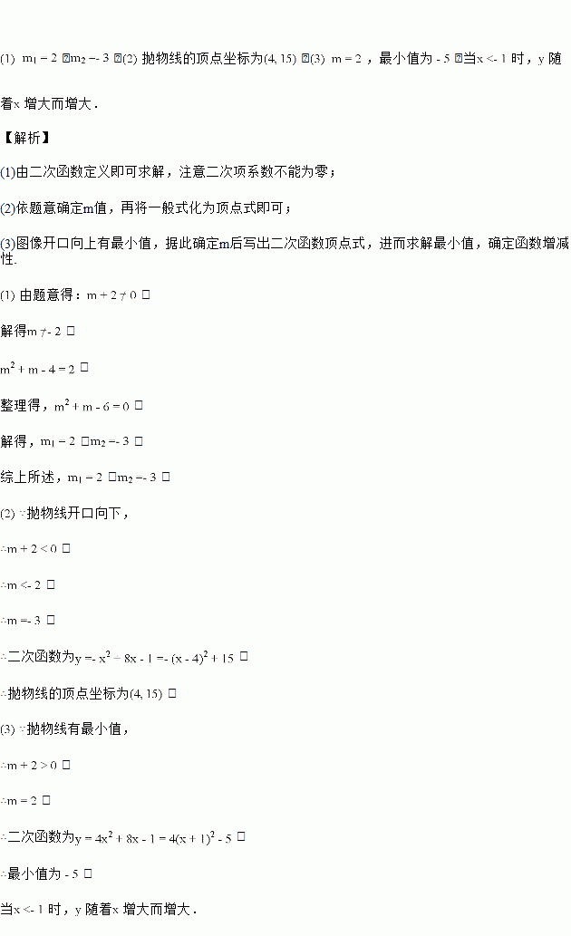 已知函数是关于的二次函数,求: