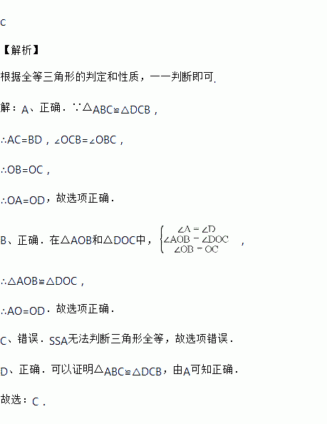 如图,在△OBC中,延长BO到D,延长CO到A,要证明OD=OA,则下面添加的条件中错误的是( )