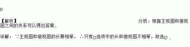用6个相同的小正方体搭成一个几何体,若它的俯视图如图所示,则它的主视图不可能是( )