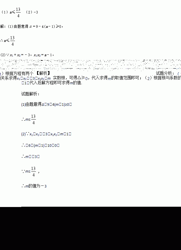 关于x的一元二次方程x2+3x+m-1=0的两个实数根分别为x1,x2.