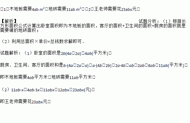 (2)如果地砖的价格为每平方米x元,木地板的价格为每平方米3x元,那么王老师需要花多少钱?