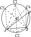 当CA=CB,则C为AB的垂直平分与圆的两交点,