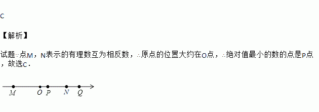 如图,四个有理数在数轴上的对应点M,P,N,Q,若点M,N表示的有理数互为相反数,则图中表示绝对值最小的数的点是( )