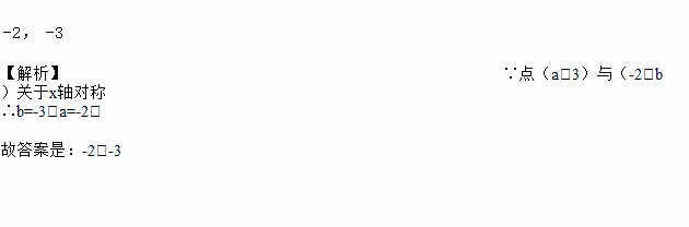 已知点P(a,3),Q(-2,b)关于x轴对称,则a=_______,b=_______.