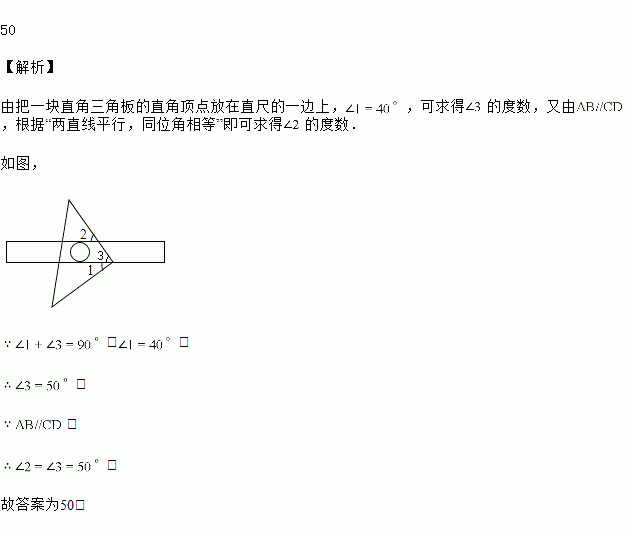 如图,把一块等腰直角三角板的直角顶点放在直尺的一边上,如果,那么______