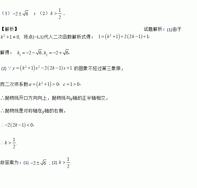 )若二次函数图象不经过第三象限,则