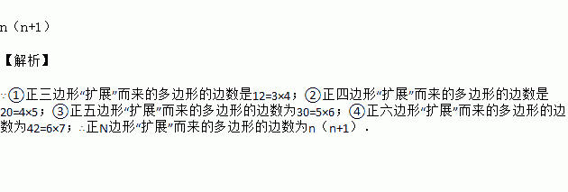 如图,图①中的多边形(边数为12)由正三角形“扩展”而来的,图②中的多边形(边数为20)是由正方形“扩展”而来的……依次类推,则由正n边形“扩展”而来的多边形的边数为____.