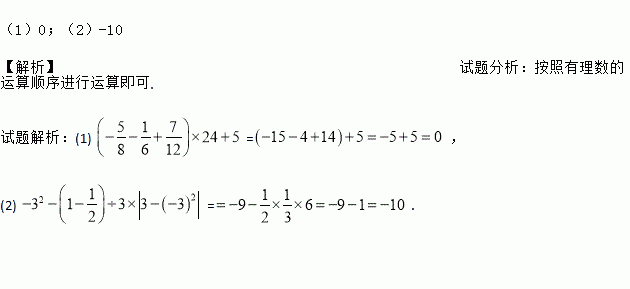 (1) (--+)×24+5; (2)-32-(1-)÷3×|3-(-3)2|.