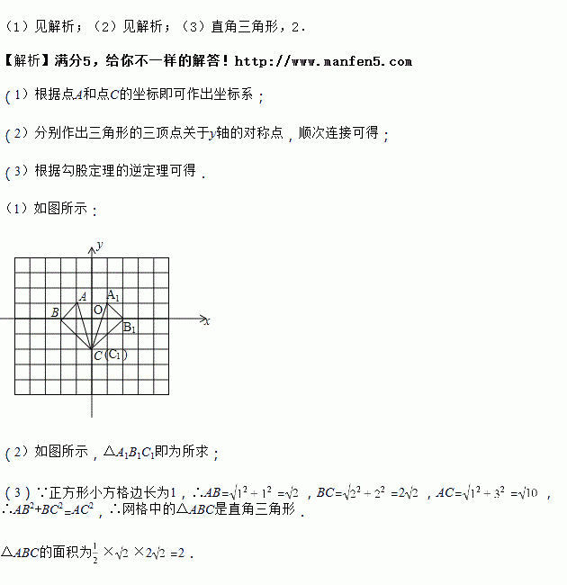 (1)在如图所示的网格平面内作出平面直角坐标系;