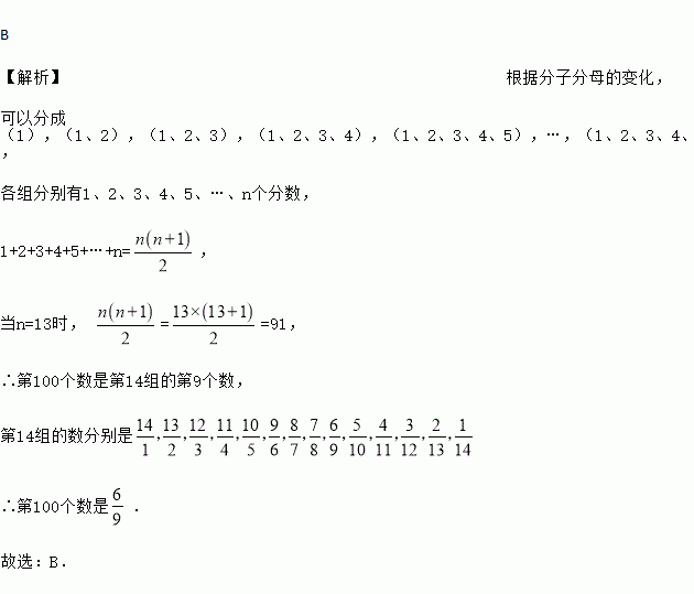 已知数串: 依照这前15个数的分子、分母的构成规律排列下去,第100个数是( )