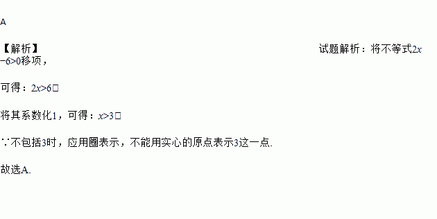 不等式2x﹣6>0的解集在数轴上表示正确的是( )