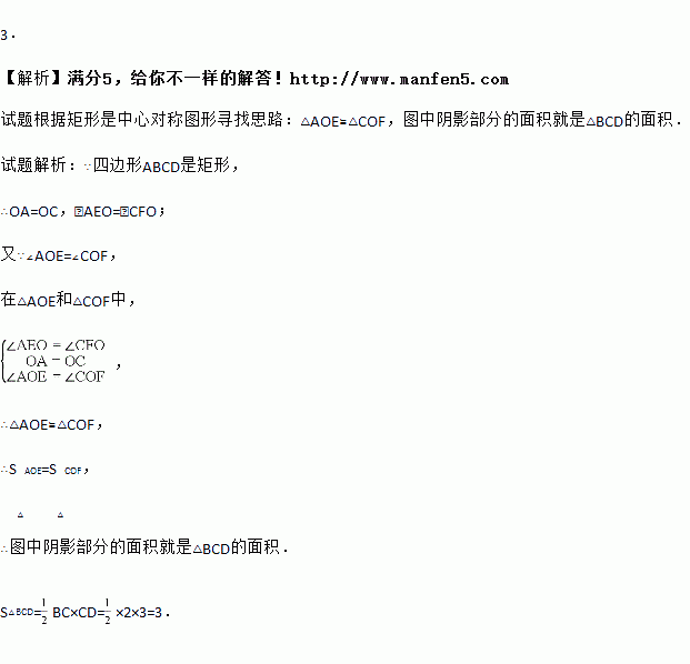 如图,矩形的对角线和相交于点,过点的直线分别交和于点、,,,则图中阴影部分的面积为________.