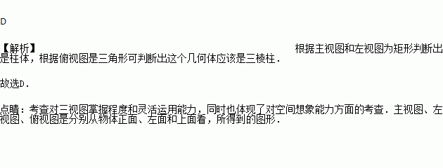 A. 圆锥 B. 圆柱 C. 三棱锥 D. 三棱柱