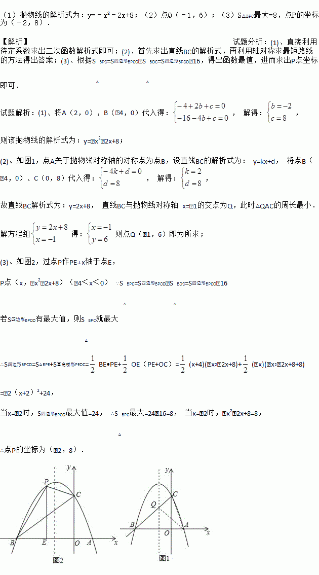 如图1,抛物线y=﹣x2+bx+c与x轴交于A(2,0),B(﹣4,0)两点.