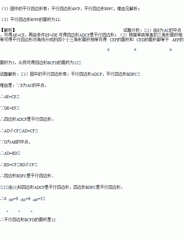 (2)若△AEF的面积是3,求四边形BCFD的面积.