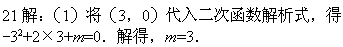 (10分)如图所示,二次函数y=-x2+2x+m的图象与x轴的一个交点为A(3,0),另一个交点为B,且与y轴交于点C.![]()
