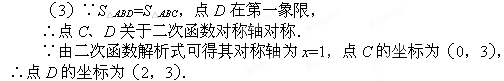 【小题3】(3)该二次函数图象上有一点D(x,y)