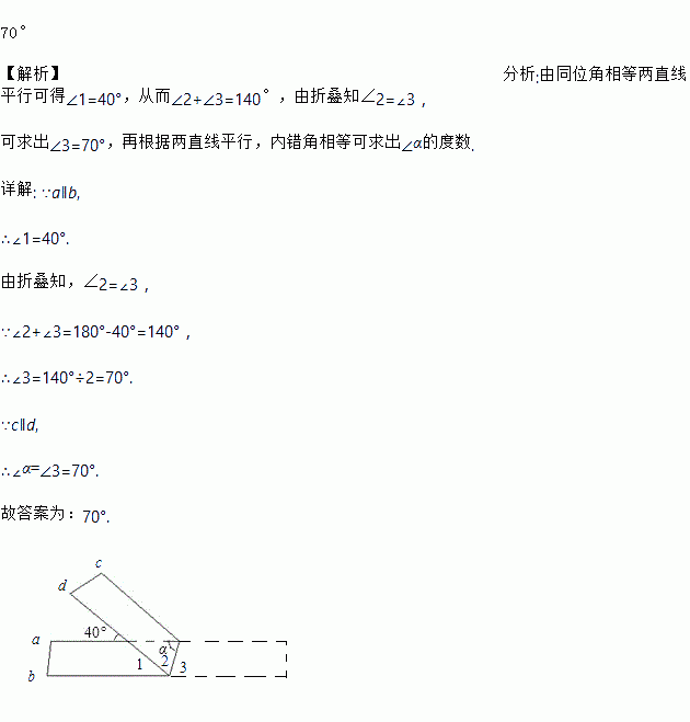 如图,有一条平直的等宽纸带按图折叠时,则图中∠α=____