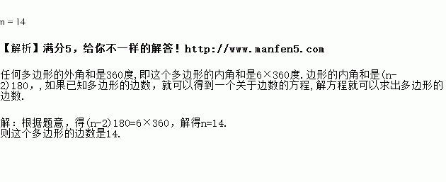 如果一个多边形的内角和是它的外角和的6倍,那么这个多边形是几边形.