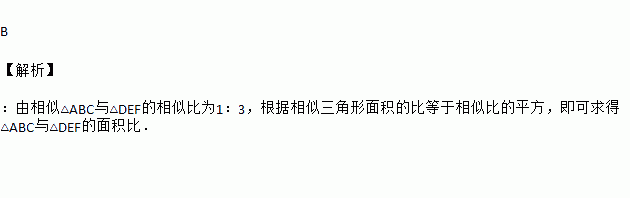 若相似△ABC与△DEF的相似比为1:3,则△ABC与△DEF的面积比为( )