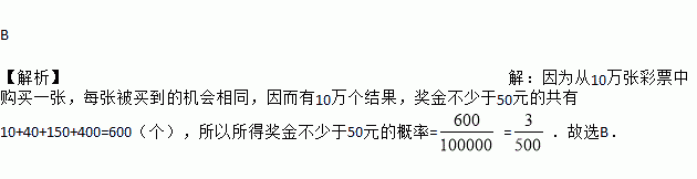 如果花2元钱购买1张彩票,那么所得奖金不少于50元的概率是( )