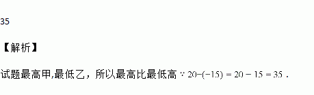 甲、乙、丙三地的海拔高度分别为20、-15和-10,那么最高的地方比最低的地方高____。