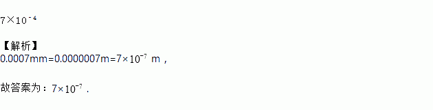 肥皂泡沫的泡壁厚度大约是0.0007mm,则数据0.0007用科学记数法表示为______.