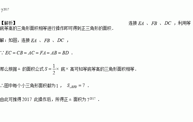 的各边依次循环延长一倍,顺次连接着三条线段的外端点,这样操作后,可以得到一个新的正三角形