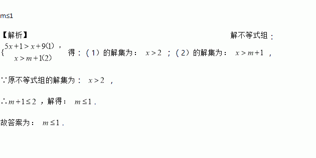 如果关于x的不等式组的解集是x>2,那么m的取值范围是________.
