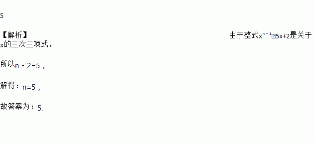 若整式xn﹣2﹣5x+2是关于x的三次三项式,那么n=_____.