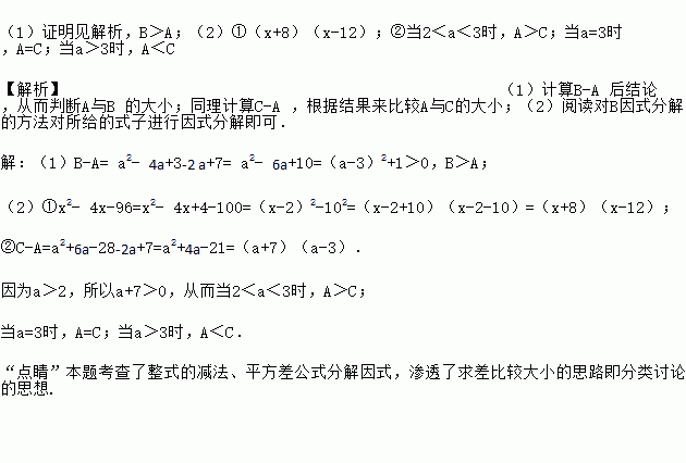 (1)求证:B-A>0,并指出A与B的大小关系;
