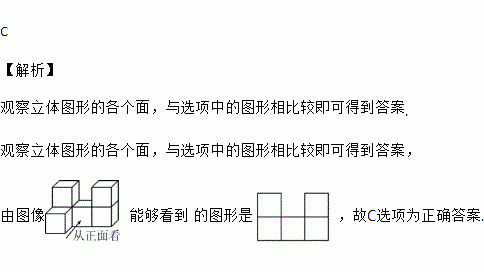 由6个相同的立方体搭成的几何体如图所示,则它的从正面看到的图形是( )