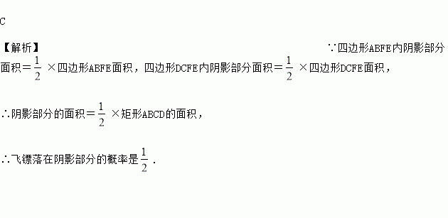 小江玩投掷飞镖的游戏,他设计了一个如图所示的靶子,点E、F分别是矩形ABCD的两边AD、BC上的点,EF∥AB,点M、N是EF上任意两点,则投掷一次,飞镖落在阴影部分的概率是( )