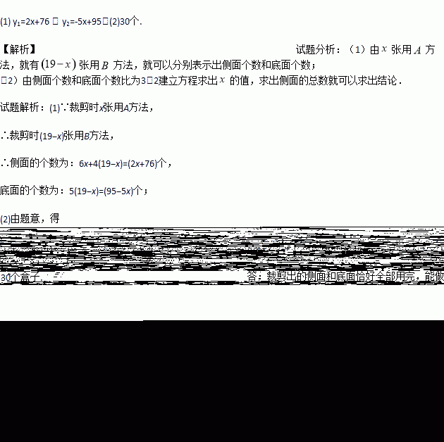 (2)若裁剪出的侧面和底面恰好全部用完,问能做多少个盒子?