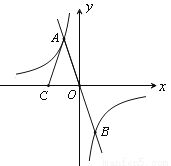 如图,正比例函数y1=-3x的图象与反比例函数y2=的图象交于A、B两点,点C在x轴负半轴上,AC=AO,S△ACO=12.