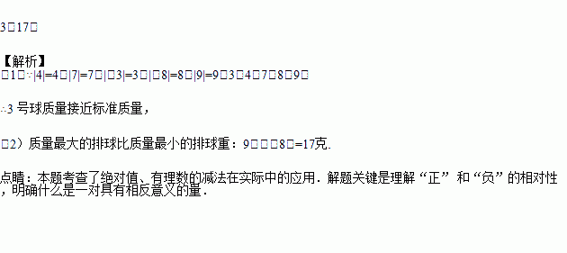 检查 5 个篮球的质量,把超过标准质量的克数记作整数,不足的克数记作 负数,检查结果如表: