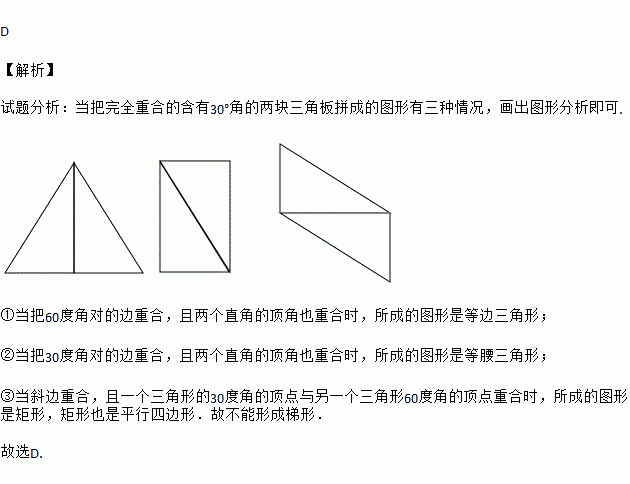 用两块完全相同的直角三角板,不能拼成下列图形的是( )